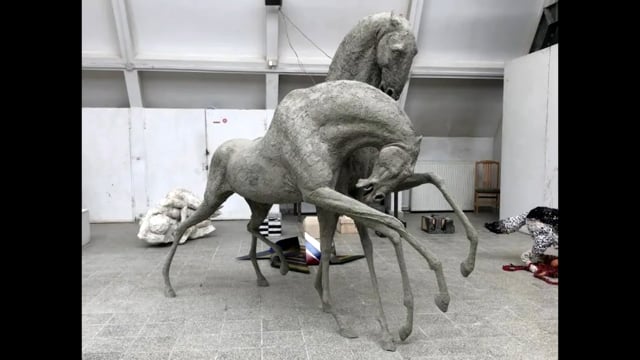 Wystawa plenerowa Julii Mazur z rzeźbą pary koni