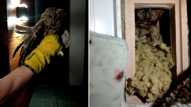 Sowa z kościoła w Ciechocinie … utknęła w kominie!