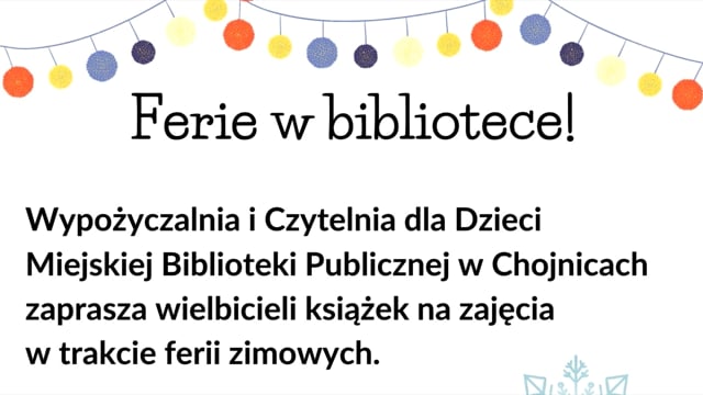 Wypożyczalnia i Czytelnia dla Dzieci zaprasza na zajęcia podczas zimowych ferii