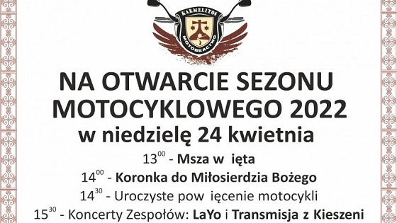 Karmelici z Zamartego zapraszają na otwarcie sezonu motocyklowego 2022