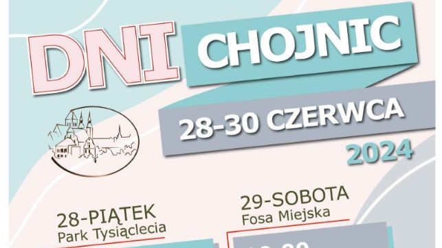 „Urząd Miejski w Chojnicach, Promocja Regionu Chojnickiego i Chojnickie Centrum Kultury zapraszają serdecznie do udziału w tegorocznych Dniach Chojnic, które odbędą się od 28 do 30 czerwca. W programie trzy dni pełne emocji, kultury i rozrywki, które pozwolą wspólnie celebrować święto naszego miasta.