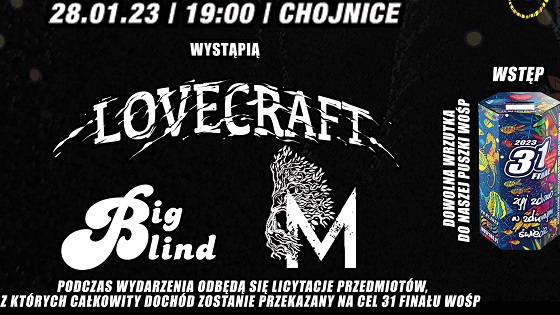 Metalowe serce zabije dla Wielkiej Orkiestry Świątecznej Pomocy w przeddzień ogólnopolskiego finału. W sobotę 28.01 o g. 19 w Browarze Gościniec w Chojnicach wystąpią Mōringa, Lovecraft oraz Big Blind. Koncertom będą towarzyszyć licytacje.