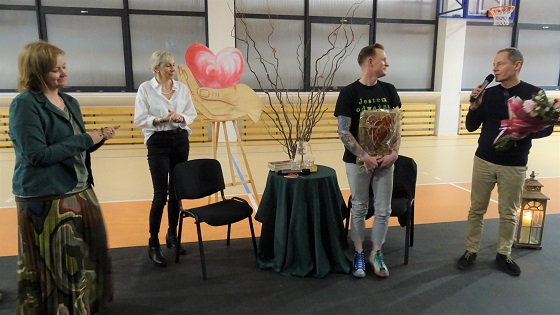 Na zakończenie goście spotkania od kierownictwa szkoły otrzymali upominki i kwiaty, także szefowa chojnickiego WTZ Joanna Warczak. Potem była okazja zakupić okolicznościowe wydawnictwa o ks. Janie, porozmawiać z jego „uczniem”, który w czasie spotkania z chojniczanami miał założoną koszulkę, którą wcześniej nosił ks. Jan, z napisem „Jestem odważny i dziki”.