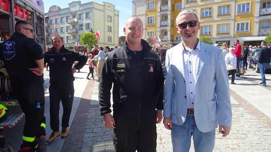 Piękna słoneczna pogoda skłoniła wielu człuchowian (zapewne nie tylko) do skorzystania z bogatej oferty przygotowanej przez organizatorów. Spotkaliśmy też na człuchowskim Rynku szefa miejscowego Domu Kultury Adama Bondarenko (był w roli nie tylko jednego z organizatorów, ale i konferansjera), wójta Gminy Człuchów Pawła Gibczyńskiego (pozuje nam na zdjęciu ze strażakiem z OSP Polnica) oraz starostę człuchowskiego Aleksandra Gappę (w fotogalerii w rozmowie z policjantami). Wokół uruchomionej już fontanny rozłożyło się wiele stoisk i miejsc rozrywki. Bezpłatnie można było skorzystać z kilku dmuchańców, skosztować grochówki i kiełbaski z grilla oraz z waty cukrowej i popcornu. Na stoisku KGW z gminy Człuchów za niewielką odpłatnością można było nabyć pierogi, strogonowa czy kawałek ciasta. Była okazja wziąć udział w miejskiej grze planszowej pt. „Człuchów! Zagraj, by pokochać” czy posłuchać występów młodych artystów z MDK Człuchów, przedszkoli i SP PIANO. Na pochyłej nawierzchni Rynku w Człuchowie ustawiło się kilka tuningowanych aut oraz dwa wozy bojowe OSP z gminy Człuchów. Jeden miał już status zabytku (Jelcz 315 z 1987 - OSP Gwieździn). Zainteresowani odbyciem służby wojskowej mogli znaleźć potrzebne informacje w stoisku Wojskowego Centrum Informacji w Człuchowie. Były także stoiska typowo odpustowo-jarmarczne. Można było pozować do zdjęcia na policyjnym motocyklu.