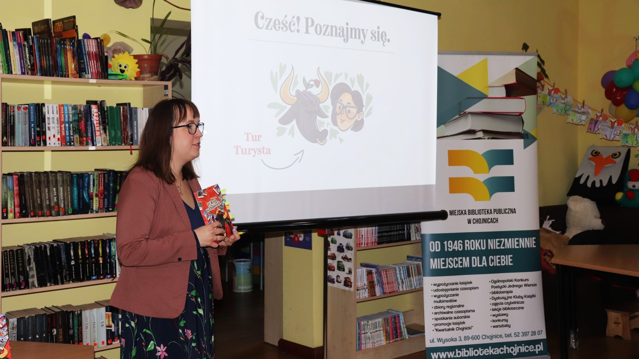Za biblioteczną ladą staną wicestarosta, archeolog i piłkarze Chojniczanki