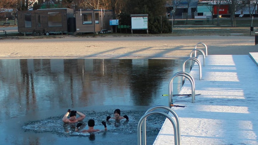Po ostatnich mrozach Charzykowskie Morsy chwyciły za siekiery