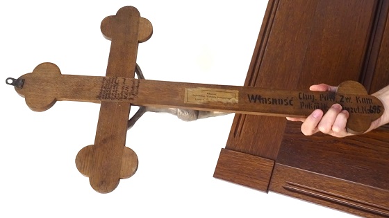 Po konferencji na prośbę dziennikarzy umożliwił im wykonanie zdjęć krzyża w swoim gabinecie. Po informacji starosty, że na jego odwrocie są napisy, na chwilę krzyż został zdjęty, by zrobić zdjęcie jego odwrotnej strony (na ilustracji, pełny format na FB Chojnice TV). Z treści napisu wynika, że w gmachu Starostwa pojawił się on w 1928 roku.