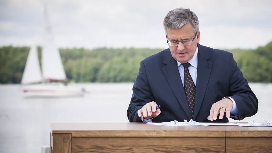 Na zdjęciu ze strony Prezydent.pl Prezydent Bronisław Komorowski w czerwcu 2013 roku podpisuje nad brzegiem jeziora Charzykowskiego projekt ustawy ws. ochrony krajobrazu.