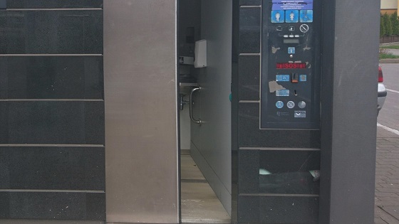 W 2009 roku po sprzedaży działki z miejskim WC mieszczącym się przy ul. Gimnazjalnej, za ok. 50% pozyskanej kwoty (370 tys. zł z przyłączami) powstała piękna jednoosobowa automatyczna toaleta. Znajduje się na parkingu przy stadionie miejskim przy ul. Mickiewicza. Dziś (21.04.2021) mieliśmy nieprzyjemność zobaczyć jej stan techniczny.