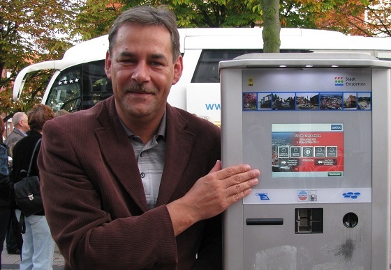 Na koniec jeszcze takie ciekawostki. Na Dniach Emsdetten były trzy sceny, na których występowały nie tylko gwiazdy ogólnoniemieckie, ale i lokalne, w tym kilka orkiestr dętych. Na jarmarku były stoiska z piwem, skąd autor przywiózł plastikowy kubek z herbem Emsdetten. To miasto nie ma Straży Miejskiej, a parkomaty (na zdjęciu stoi przy nim burmistrz Arseniusz Finster) posiadają także moduł z informacjami o mieście i Urzędzie Miejskim. Zdecydowanie warto, by to partnerskie miasto odwiedzało jak najwięcej mieszkańców Chojnic.