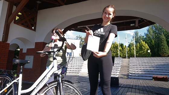 Z kolei inni wystawcy prezentowali i sprzedawali to, czego nauczyli się produkować, wykorzystując naturalne składniki. Turyści niekiedy aż zdumiewali się pomysłami na naturalne mydła, wyroby serowarskie, produkty z własnych pasiek, masarni. Rozmaitymi wiktuałami częstowały miłe panie z kół gospodyń wiejskich. Były i nagrody, a wśród nich głowna - rower. Otrzymała go w drodze losowania Amelia Skórczewska z Brus (na zdjęciu wraz z prezes "Charzy..." Bożeną Stępień), która wzięła udział w akcji oddawania krwi.