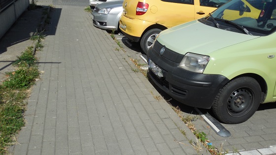 Zgodnie z rozporządzeniem Ministra Transportu i Gospodarki Morskiej minimalna szerokość chodnika, o ile jest przy jezdni lub parkingu, to 2 m. Jeśli oddziela chodnik od jezdni lub parkingu pas zieleni, to 1,5 m. Mocno nam się wydaje, że te wymogi nie są zachowane w tym miejscu Alei Bayeux.
