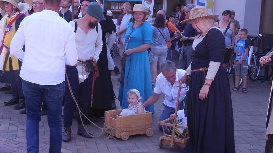 Krótko przed południem rozpoczął się XVI Turniej Rycerski organizowany przez miejscowe bractwo rycerskie herbu TUR. Jego uczestnicy przemaszerowali ulicami starówki, a podczas krótkiego postoju na rynku oddano dwa strzały ze sławetnej już hakownicy. Przy okazji wiceburmistrz zrobił zdjęcie … burmistrzowi, który przyklęknął przy drewnianych wózkach z małymi dziećmi ciągniętymi przez rodziców w średniowiecznych strojach.
