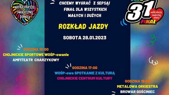 Po raz pierwszy „dziać się” będzie także w Charzykowach (oprócz lokalnych wydarzeń WOŚP-owych). Miejski sztab organizuje tam w sobotę 28.01 od 10.00 I edycję Chojnickiego Sportowego WOŚP-owania. Poszczególne części (bieg, jazda na rowerze oraz morsowanie w jeziorze) odbędą się w amfiteatrze, na plaży oraz w okolicy tych miejsc.