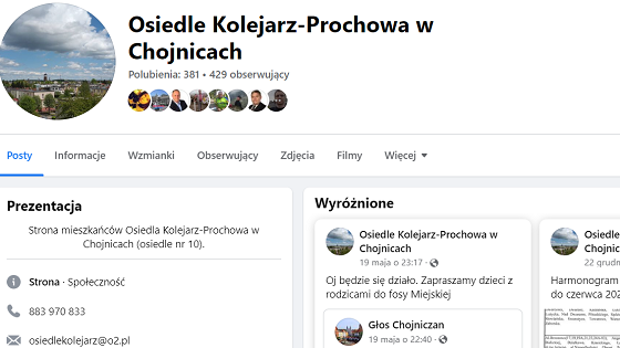 Zajrzeliśmy na wspomniany profil i jak widać na screenie, ma nazwę „Osiedle Kolejarz – Prochowa w Chojnicach”. Nie „Osiedla…”. Opisany jest jako „Strona mieszkańców Osiedla Kolejarz-Prochowa w Chojnicach (osiedle nr 10)” (screen w artykule). Skontaktowaliśmy się z Michałem Gruchałą, by zadać jemu pytanie, czy wspomniany profil w ostatnich dniach miał zmienianą nazwę. - Nie, od momentu założenia jego przez Marcina Wałdocha ma wciąż nazwę „Osiedle Kolejarz – Prochowa”. Przez poprzednie 8 lat, gdy szefem SMO był Kazimierz Drewek, nie został założony profil SMO Kolejarz – Prochowa. Ten profil nie był i nie jest oficjalnym profilem SMO, a mieszkańców osiedla Kolejarz – Prochowa” – odpowiedział nam Michał Gruchała.
