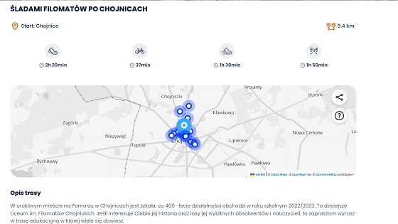 Wcześniej w tej uczelni powstała aplikacja promująca pomniki przyrody na terenie naszego powiatu. Kolejna aplikacja działa z poziomu strony internetowej i na pecetach, i na smartfonach. Adresowana jest nie tylko do turystów, ale i do mieszkańców miasta i powiatu. Dr Martyna Bluhm zademonstrowała podczas prezentacji sposób rejestracji i logowania się w niej, używania i obsługi jej. Posiada ona trasy łatwe, średnie i trudne. Można je pokonywać pieszo z kijkami lub bez nich, biegiem lub na rowerze. Najkrótsze mają 1 km, najdłuższe 10 km. Posiadają tzw. punkty kontrolne, gdzie jej użytkownik, po ich odnalezieniu, powinien zalogować się.