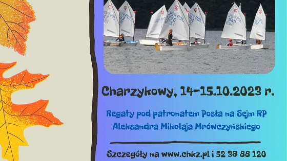 Chojnicki Klub Żeglarski zaprasza na ostatnią edycję regat w tym roku. W dniach 14-15.10.2023 odbędą się regaty Enea Puchar Jesieni pod patronatem posła na sejm RP Aleksandra Mikołaja Mrówczyńskiego.